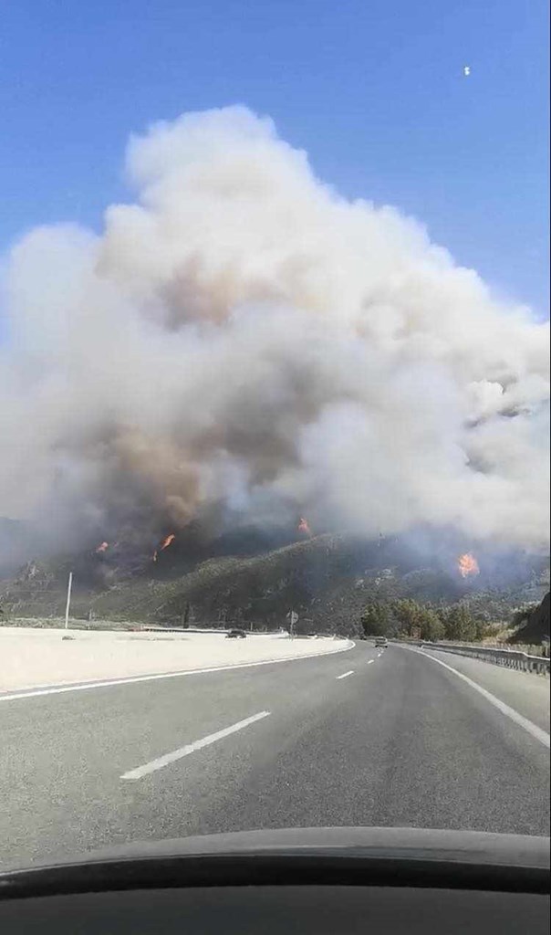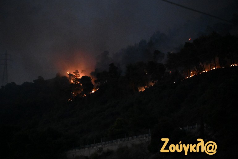 Δείτε πλάνα από τη φωτιά που καίει κοντά την Εθνική Οδό: