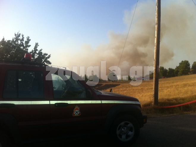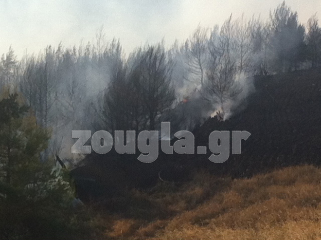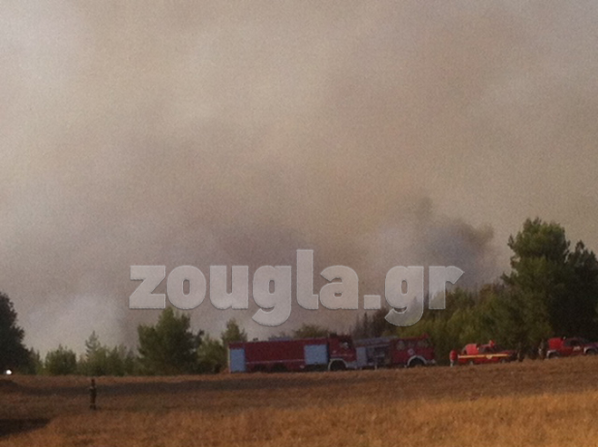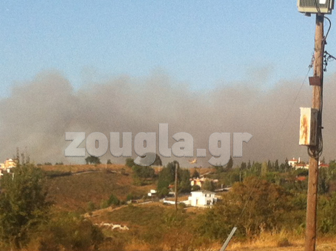 Η φωτιά είναι σε απόσταση αναπνοής από οικισμό, γύρω στα 150 μέτρα, αλλά σύμφωνα με την Πυροσβεστική Υπηρεσία, δεν απειλούνται σπίτια.