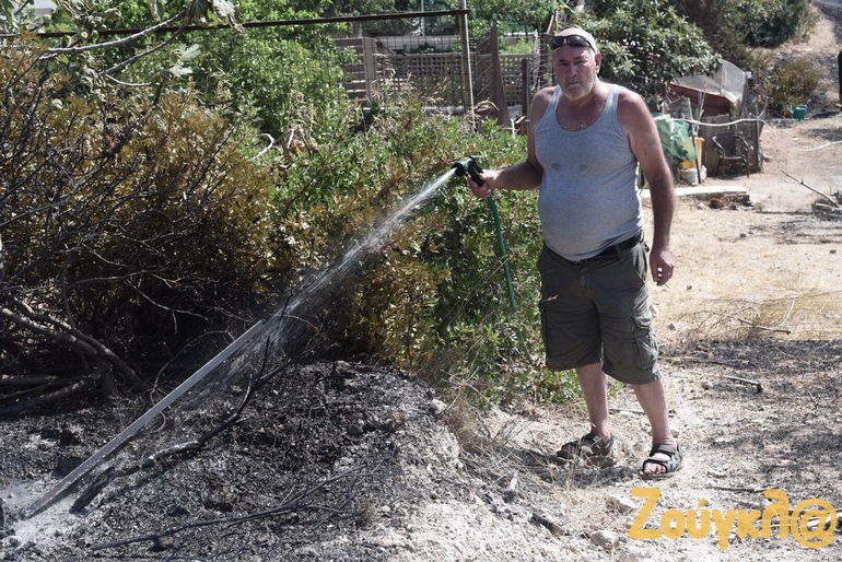 Η φωτιά έκαψε χαμηλή βλάστηση σε αραιοκατοικημένη περιοχή, ενώ οι φλόγες έφτασαν σε αυλές, προκαλώντας ζημιές εξωτερικά σε κάποια σπίτια.