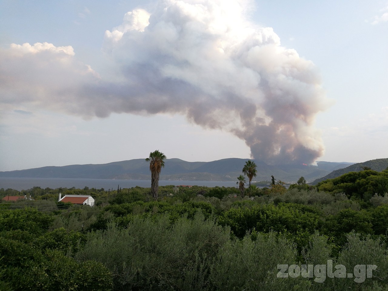 Ωστόσο η πυρκαγιά εξακολουθεί να κινείται έρπουσα στο πυκνό δάσος της περιοχής και για το λόγο αυτό στην περιοχή παραμένουν ισχυρές δυνάμεις της πυροσβεστικής.