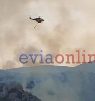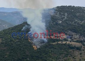 Αυτή την ώρα οχήματα της Πυροσβεστικής σπεύδουν από Αλιβέρι, Κύμη και Κάρυστο, καθώς και 3 εναέρια μέσα. Η φωτιά ξέσπασε πιθανότατα από κεραυνό και καίει δασική έκταση ψηλά στο βουνό.