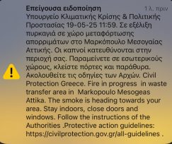 Ωστόσο το 112 έστειλε μήνυμα σε κατοίκους της ευρύτερης περιοχής αναφέροντας ότι «οι καπνοί κατευθύνονται στην περιοχή σας. Παραμείνετε σε εσωτερικούς χώρους, κλείστε πόρτες και παράθυρα».