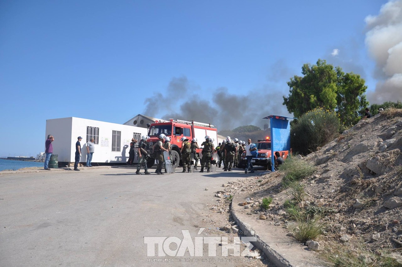 Μεγάλη φωτιά ξέσπασε το απόγευμα της Δευτέρας στον καταυλισμό προσφύγων στη Σούδα της Χίου.
