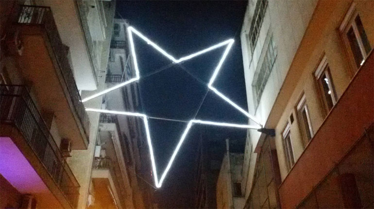 Οι περαστικοί σταματούν στο σημείο και σπεύδουν να φωτογραφήσουν και να φωτογραφηθούν με φόντο το αστέρι , το οποίο αναμένεται να κλέψει την παράσταση τα φετινά Χριστούγεννα στην πόλη.