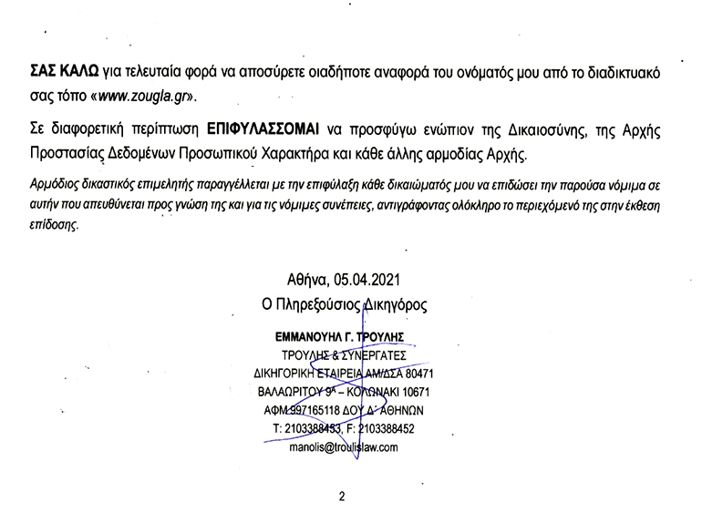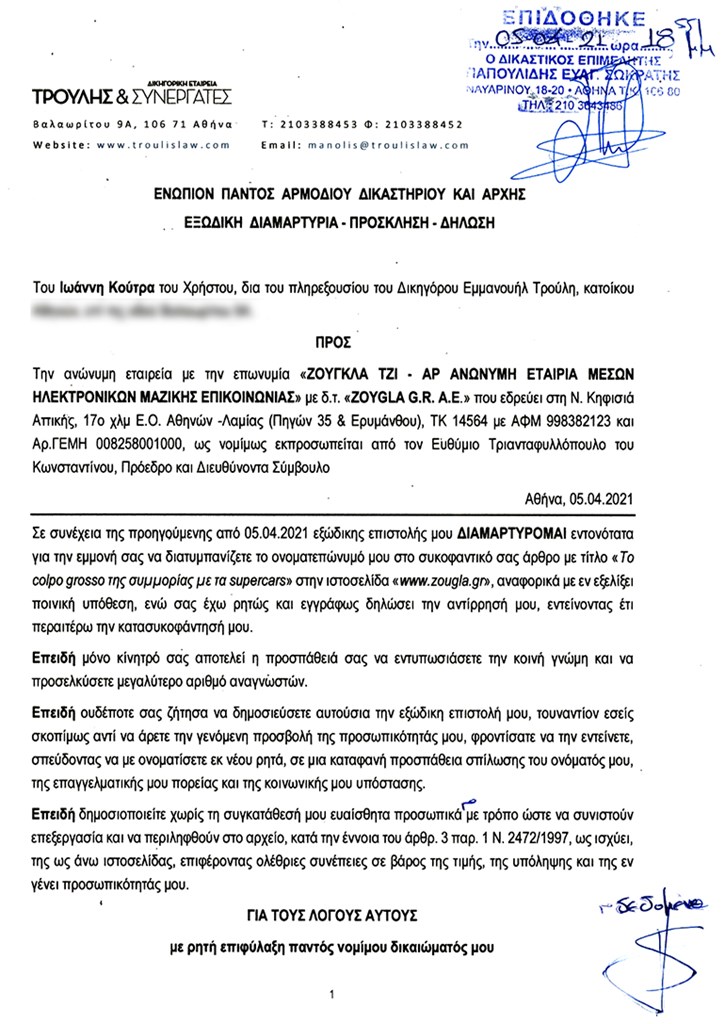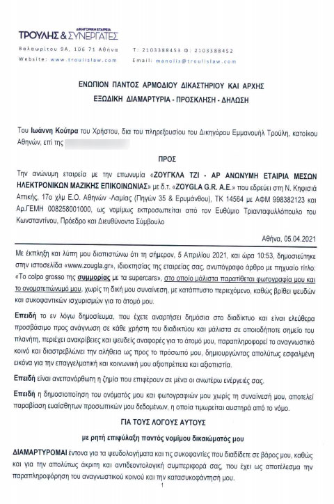 Εξώδικο του Ιωάννη Κούτρα στο zougla.gr