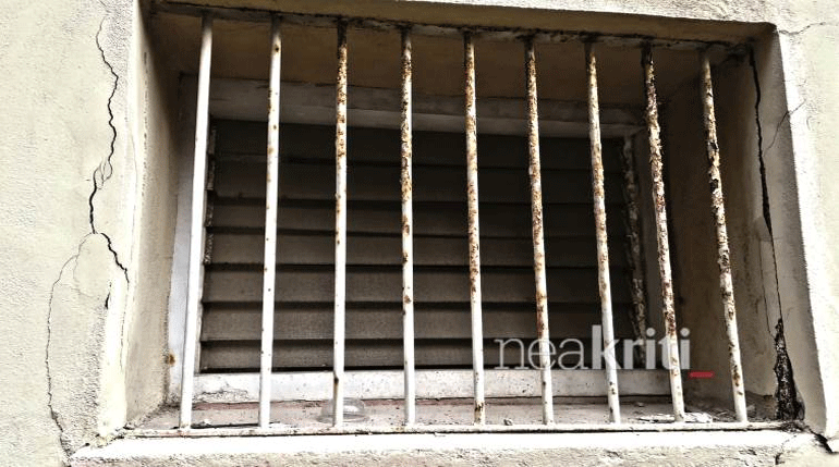 Σκασμένα ντουβάρια και οροφές, σκουριασμένα σίδερα και απαρχαιωμένες πόρτες και παράθυρα συνθέτουν το σκηνικό παρακμής που επικρατεί εδώ και χρόνια στο ιστορικό κτήριο της λεωφόρου Δικαιοσύνης, όπου στεγάζονται τα Δικαστήρια Ηρακλείου.