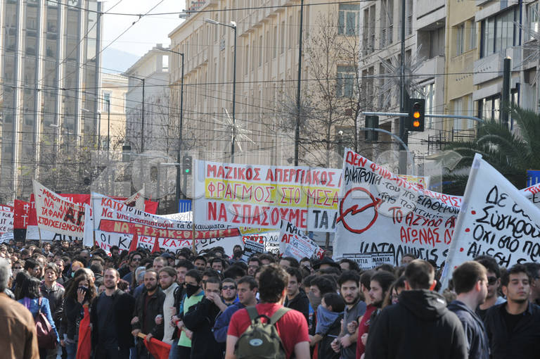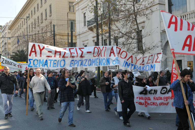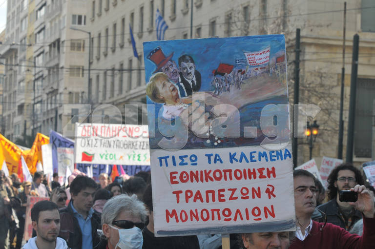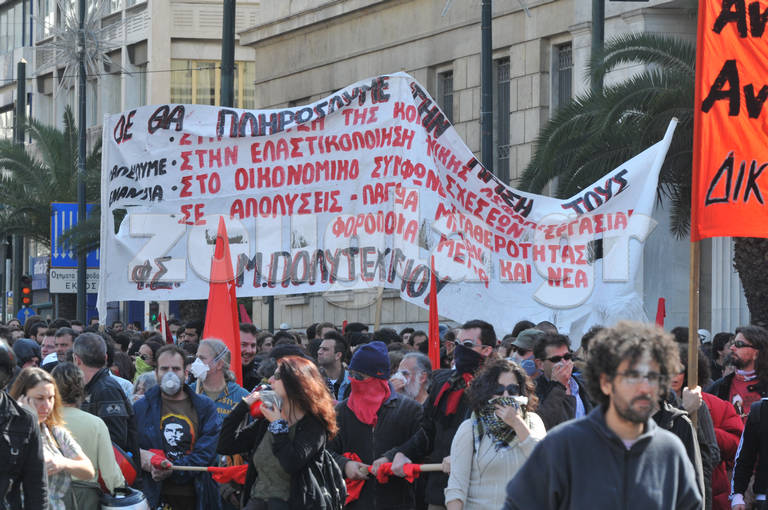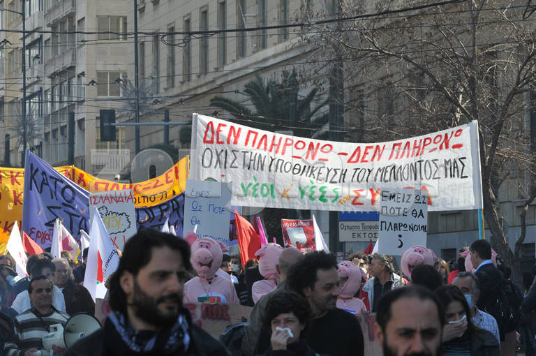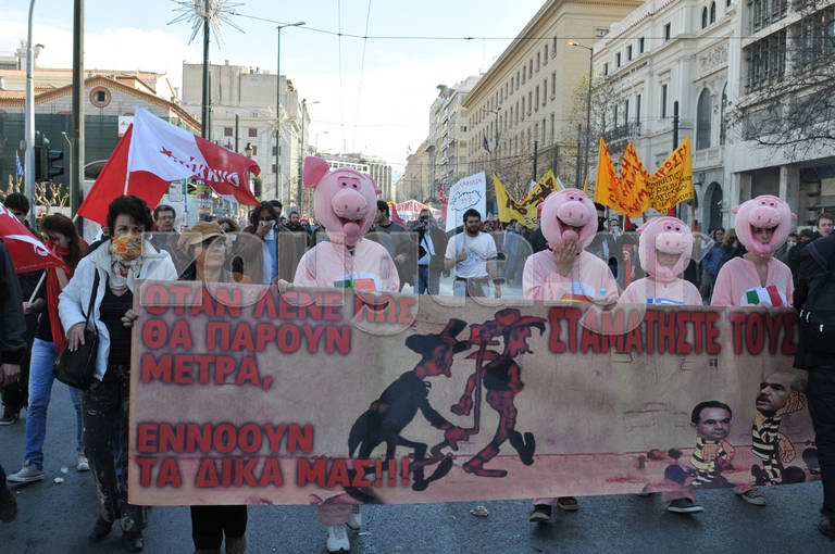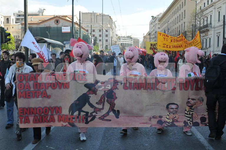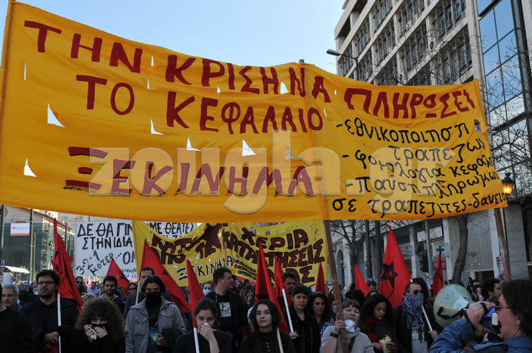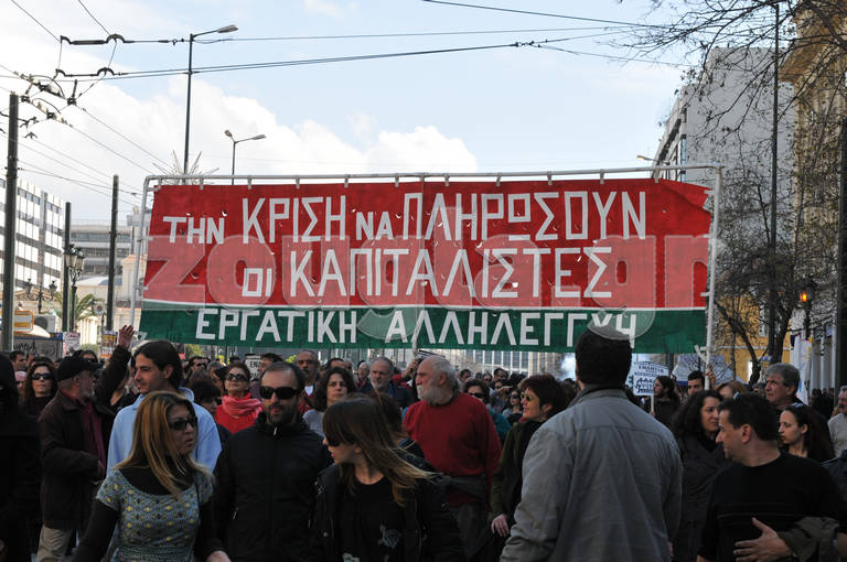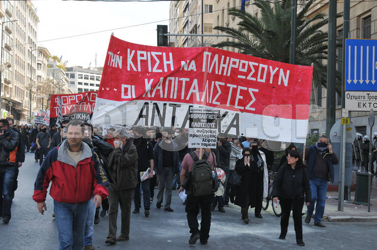 «Ποτάμια» από διαδηλωτές ξεχύθηκαν στους δρόμους, κρατώντας σημαίες και πανό, με ένα κοινό αίτημα: Να αποσυρθούν τα οικονομικά μέτρα που ψήφισε η Βουλή και τα οποία πλήττουν το εισόδημα των μικρομεσαίων. «Να πληρώσει η πλουτοκρατία την κρίση» βροντοφώναξαν χιλιάδες εργαζόμενοι, νέοι και νέες.