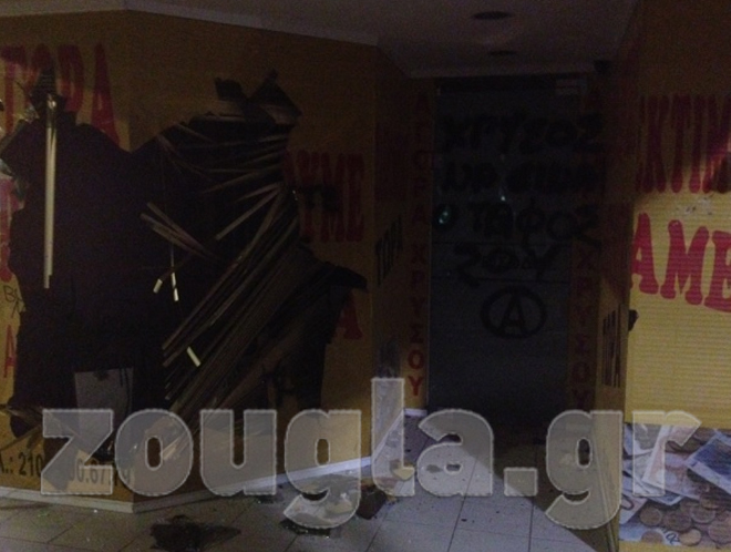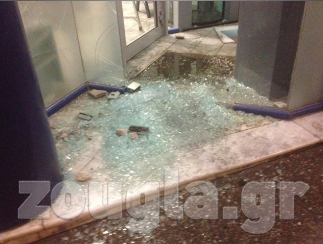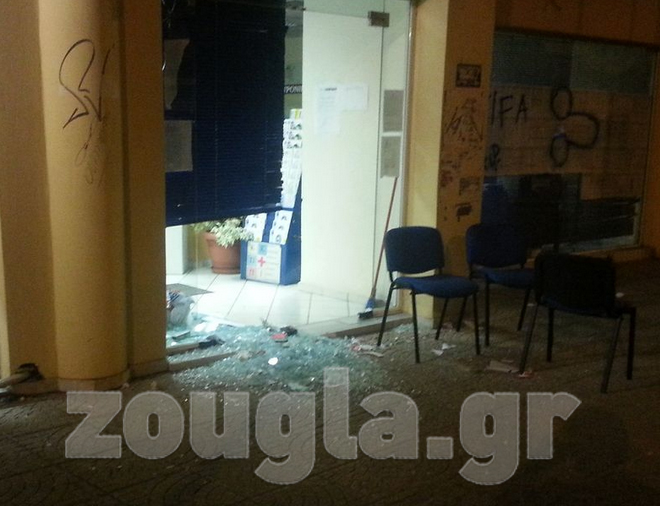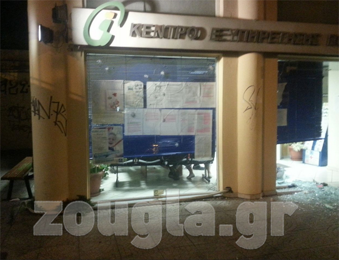 (Σπασμένες τζαμαρίες στα ΚΕΠ της Αμφιάλης)