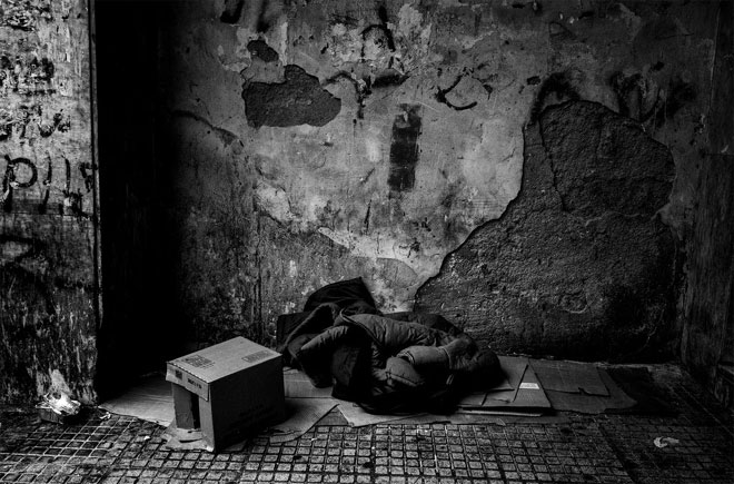 (Ένα χαρτόκουτο και ένα μπουφάν, η περιουσία ενός αστέγου)