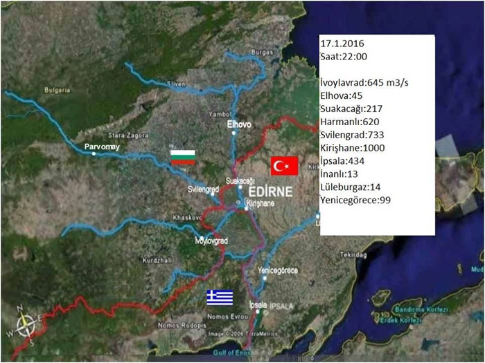 Αναφέρουν ότι «ελευθερώνουν» υδάτινες ποσότητες περισσότερες από 300m3/sec (κυβικά μέτρα)με καταγραφή στον μετρικό σταθμό του Πυθίου στον Βόρειο Έβρο περισσότερα από 630m3/sec(ανά δευτερόλεπτο), με το ύψος του νερού στην οριακή στάθμη των 4,75 μέτρων θέτοντας σε συναγερμό όλες τις υπηρεσίες της Περιφέρειας.