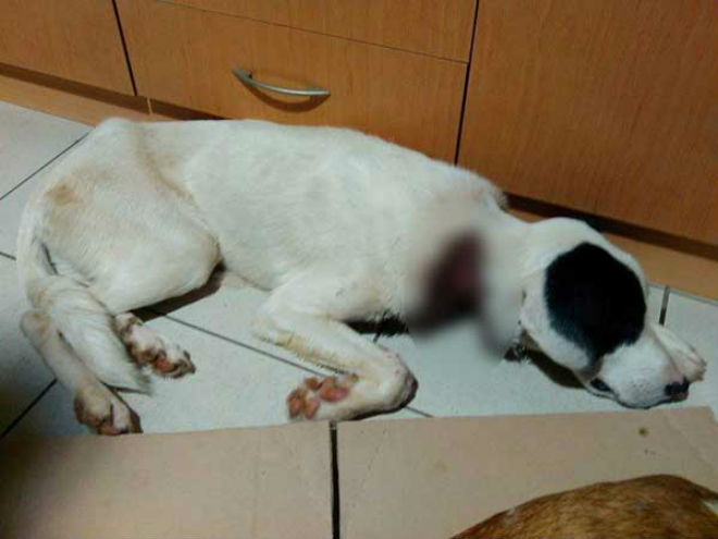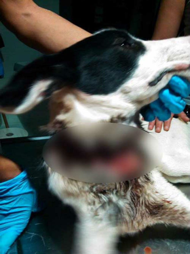 Σύμφωνα με τους κτηνιάτρους, το σκυλί είχε παραμείνει χωρίς φαγητό και νερό, ενώ το σύρμα του έχει κόψει στην κυριολεξία τον λαιμό, αφού το άτυχο ζώο προσπαθούσε όλο αυτό το διάστημα να απαλλαχθεί από αυτό.