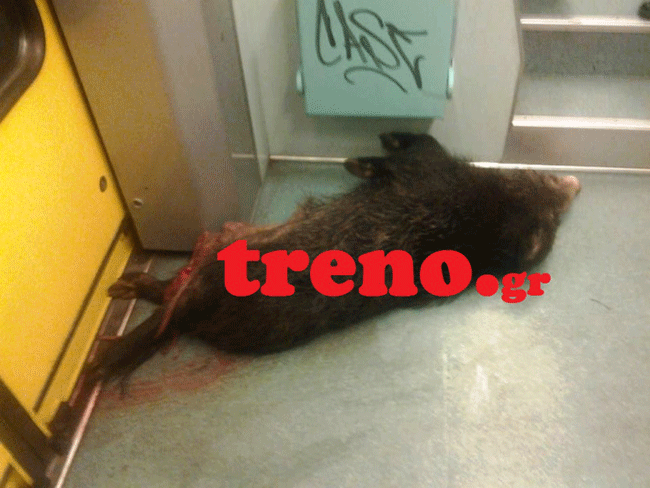 Φρίκη προκάλεσε την περασμένη Κυριακή στους επιβάτες του Προαστιακού το θέαμα ενός σκοτωμένου αγριογούρουνου.