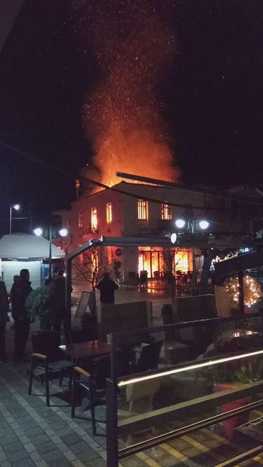 Η φωτιά φέρεται να ξεκίνησε από το καφενείο που βρίσκεται στο ισόγειο, ενώ σύντομα πήρε μεγάλες εκτάσεις καταστρέφοντας ολοσχερώς και το επάνω κτίσμα που ήταν ευτυχώς ακατοίκητο.