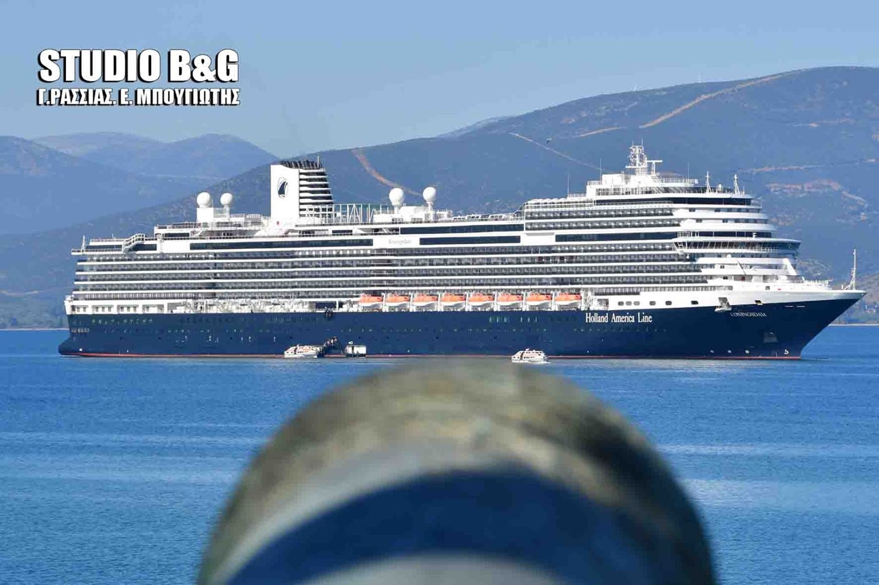 Το μήκους, 297 μ. ms Koningsdam, της Holland America Line έριξε άγκυρα στον Αργολικό Κόλπο. Το κρουαζιερόπλοιο, με σημαία Ολλανδίας, μεταφέρει 2.650 επιβάτες, η πλειονότητα των οποίων αποβιβάστηκαν στο λιμάνι του Ναυπλίου.