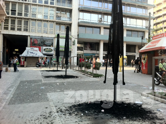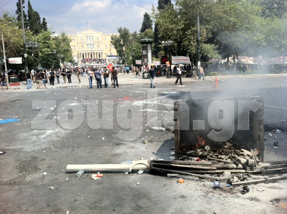 Επιπλέον, στις φλόγες τυλίχθηκε ένα βαν εταιρείας κινητής τηλεφωνίας στην οδό Όθωνος, ενώ φωτιές ξέσπασαν σε κάδους επί του πεζόδρομου στην Ερμού, ενώ νεαροί, έχοντας καλυμμένα τα πρόσωπά τους, έβαλαν φωτιά στις ομπρέλες των καφενείων που βρίσκονται μέσα στην πλατεία Συντάγματος.