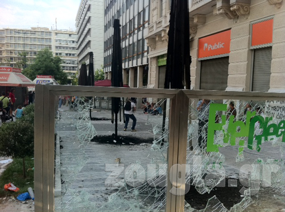 Επιπλέον, στις φλόγες τυλίχθηκε ένα βαν εταιρείας κινητής τηλεφωνίας στην οδό Όθωνος, ενώ φωτιές ξέσπασαν σε κάδους επί του πεζόδρομου στην Ερμού, ενώ νεαροί, έχοντας καλυμμένα τα πρόσωπά τους, έβαλαν φωτιά στις ομπρέλες των καφενείων που βρίσκονται μέσα στην πλατεία Συντάγματος.