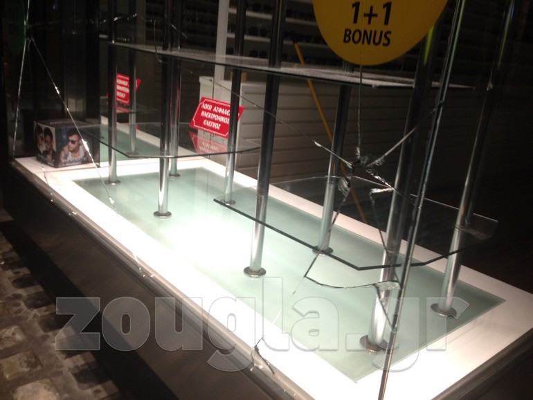 Συγκεκριμένα ζημιές υπέστησαν 54 καταστήματα, 5 ΑΤΜ τραπεζών και 4 Ι.Χ.