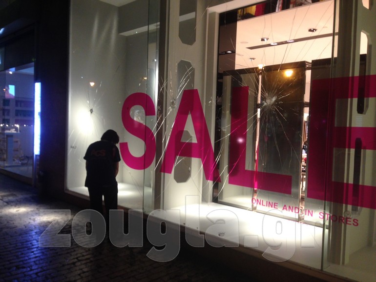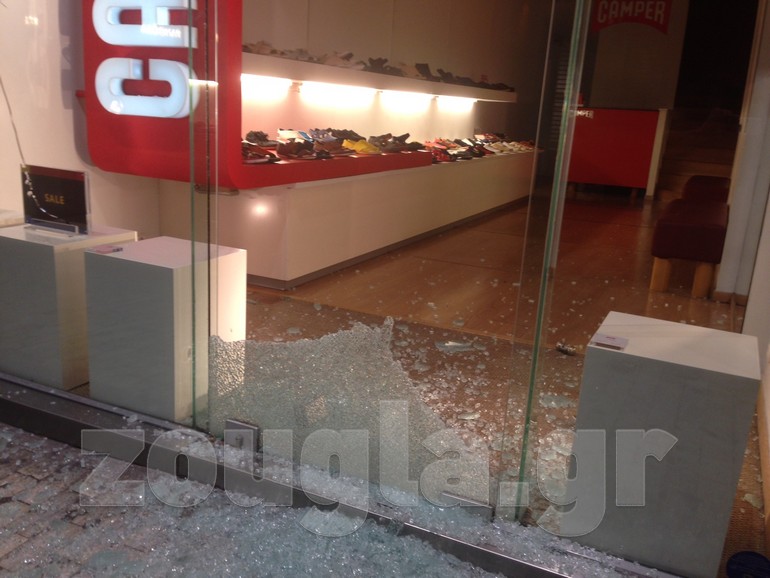 Σχεδόν όλες οι βιτρίνες των καταστημάτων της οδού Ερμού, από το ύψος της Καπνικαρέας και έως την πλατεία Συντάγματος, ήταν σπασμένες Σχεδόν όλες οι βιτρίνες των καταστημάτων της οδού Ερμού, από το ύψος της Καπνικαρέας και έως την πλατεία Συντάγματος, ήταν σπασμένες. Στο σημείο έσπευσαν άμεσα συνεργία του δήμου Αθηναίων για να αποκαταστήσει τις ζημιές.
