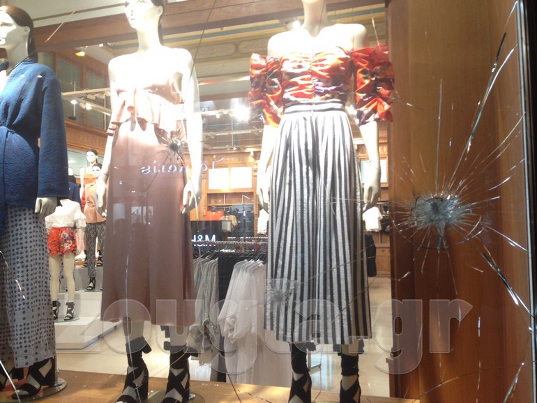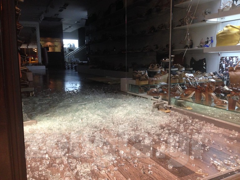 Σχεδόν όλες οι βιτρίνες των καταστημάτων της οδού Ερμού, από το ύψος της Καπνικαρέας και έως την πλατεία Συντάγματος, ήταν σπασμένες Σχεδόν όλες οι βιτρίνες των καταστημάτων της οδού Ερμού, από το ύψος της Καπνικαρέας και έως την πλατεία Συντάγματος, ήταν σπασμένες. Στο σημείο έσπευσαν άμεσα συνεργία του δήμου Αθηναίων για να αποκαταστήσει τις ζημιές.
