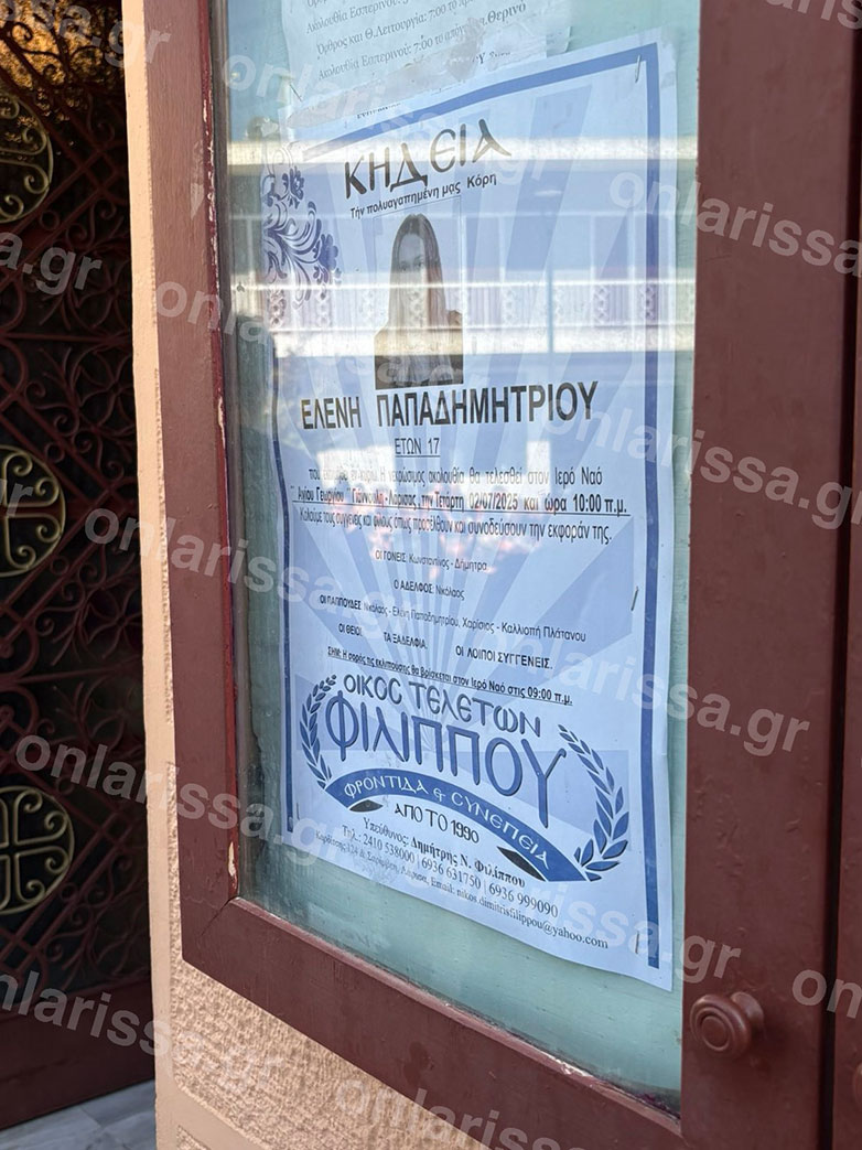 Σε βαρύ κλίμα, πλήθος συγγενών και φίλων βρέθηκαν το πρωί της Τετάρτης (2/7) στον Ιερό Ναό του Αγίου Γεωργίου στη Γιάννουλη Λάρισας, για να αποχαιρετίσουν τόσο πρόωρα, την Ελένη Παπαδημητρίου, που έφυγε μόλις στα 18 της χρόνια από τη ζωή.