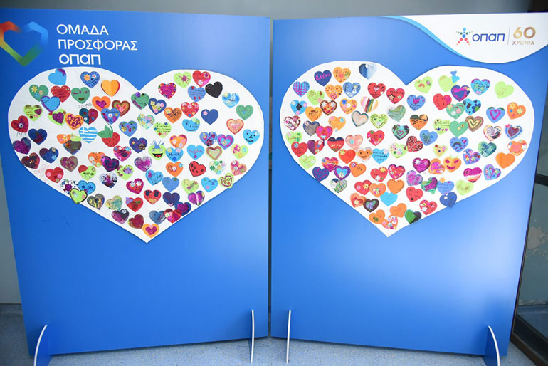Στην καρδιά της «Ομάδας Προσφοράς ΟΠΑΠ» βρίσκονται οι μικροί ασθενείς των δύο παιδιατρικών νοσοκομείων. Τα παιδιά συμμετέχουν σε δράσεις δημιουργικής απασχόλησης και φτιάχνουν ζωγραφιές που αναρτώνται σε έναν ειδικό πίνακα σε σχήμα καρδιάς, ο οποίος αποτυπώνει τη δύναμη της «Ομάδας Προσφοράς».