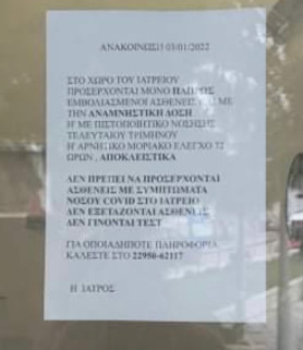 Δείτε την ανακοίνωση που θυροκολλήθηκε στην είσοδο του ιατρείου: