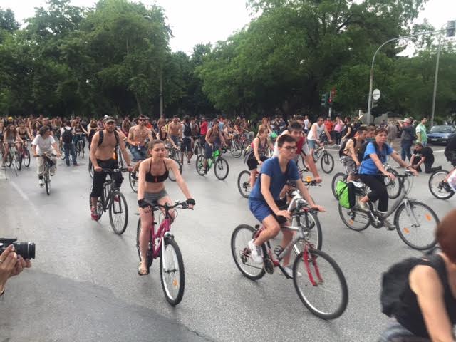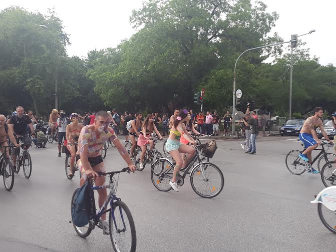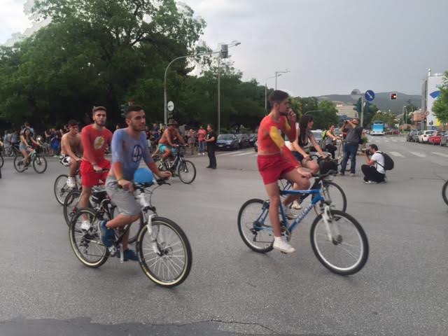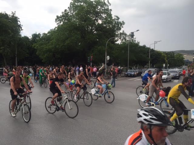 Οι συμμετέχοντες συγκεντρώθηκαν από νωρίς στο πάρκο της ΧΑΝΘ, όπου ζωγράφισαν τα γυμνά τους σώματα, έπαιξαν παιχνίδια και χόρεψαν υπό τους ήχους δυνατής μουσικής, ενώ αυτήν την στιγμή πραγματοποιούν την καθιερωμένη ποδηλατοβόλτα στο κέντρο της Θεσσαλονίκης.