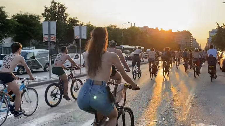 «Ποδήλατα στην πόλη για να χωράμε όλοι» φώναξαν την Παρασκευή οι συμμετέχοντες στη 16η γυμνή ποδηλατοδρομία της Θεσσαλονίκης που ολοκληρώθηκε το βράδυ λίγο πριν τις 21.30.