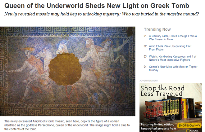 Ανάλυση για τον ένοικο του τάφου της Αμφίπολης επιχειρεί το περιοδικό «National Geographic» μετά την αποκάλυψη της Περσεφόνης.