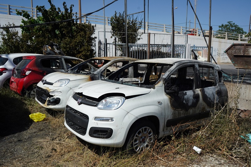 Με το πρώτο φως της ημέρας αποκαλύφθηκε η τεράστια καταστροφή που προκλήθηκε τόσο στον οικοπεδικό χώρο όσο και στην παρακείμενη μάντρα αυτοκινήτων στο Γιόφυρο στην Κρήτη.