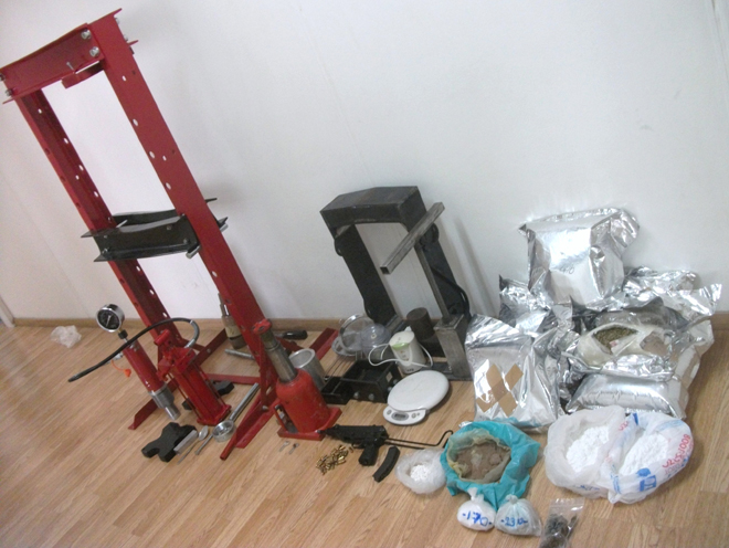 • δύο μεταλλικές κυλινδρικές κατασκευές κατάλληλες για την τυποποίηση των ναρκωτικών,