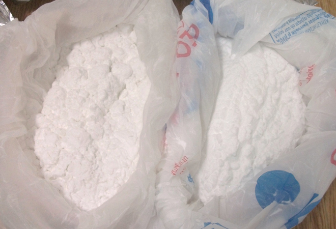 • σκόνη λευκού χρώματος άγνωστης χημικής σύνθεσης, προφανώς για τη νόθευση της κοκαΐνης βάρους 1.230 γραμμ.,
