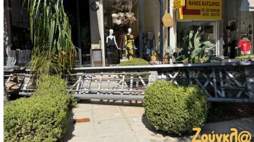 Το όχημα προσέκρουσε στην πρασιά πεζοδρομίου, στο οποίο υπάρχουν καφετέριες και καταστήματα. Ευτυχώς όμως δεν προκλήθηκαν σοβαρές υλικές ζημιές, αλλά καταστράφηκαν μόνο κάποιες εξωτερικές ταμπέλες των μαγαζιών.