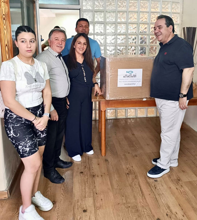 Η τελευταία παράδοση των πακέτων πραγματοποιήθηκε στους νέους γονείς από τον Γενικό Διευθυντή της «ΑΠΟΣΤΟΛΗΣ», Κωνσταντίνο Δήμτσα στο Κέντρο Δήμο Καλύμνου, παρουσία του Δημάρχου Καλυμνίων κ. Ιωάννη Μαστροκούκου, και των Αντιδημάρχων Γεωργίου Χούλλη και Ιωάννη Θεοφιλίδη.