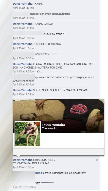 Ο πρωταγωνιστής της σημερινής ιστορίας που αναδεικνύει το zougla.gr, χρησιμοποιεί το ψευδώνυμο «Danis Yamaha» και όπως προκύπτει από το προφίλ που διατηρεί στο μέσο κοινωνικής δικτύωσης Facebook, είναι εκτροφέας pit bull και κατοικεί στη Θεσσαλονίκη.