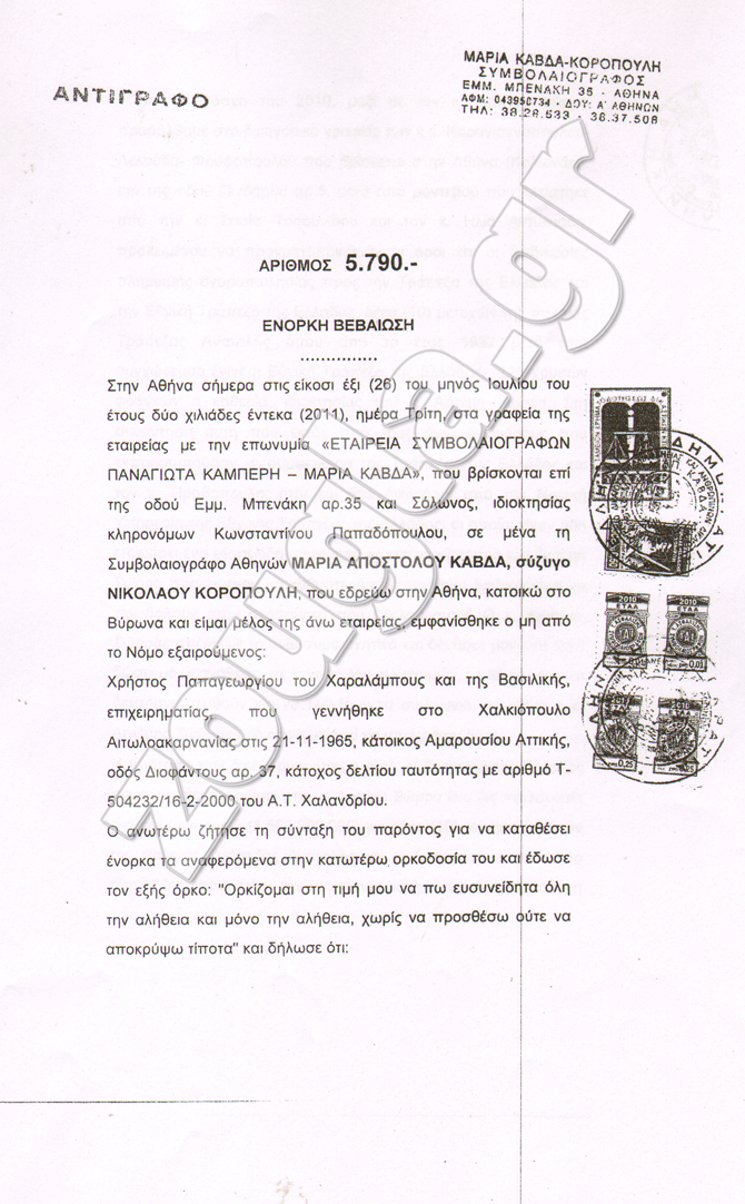 Για του λόγου το αληθές, η zougla.gr αποκαλύπτει σήμερα έγγραφο το οποίο συνετάχθη σε συμβολαιογραφικό γραφείο, όπου ένας συγκεκριμένος πολίτης δηλώνει ενόρκως πως παρίστατο σε αυτήν τη συνάντηση.