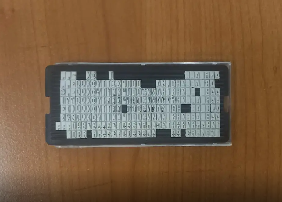 -πλακέτα/μήτρα σφραγίδας αποτελούμενη από αποσπώμενους αριθμούς, ελληνικά γράμματα, σημεία στίξης και σύμβολα,