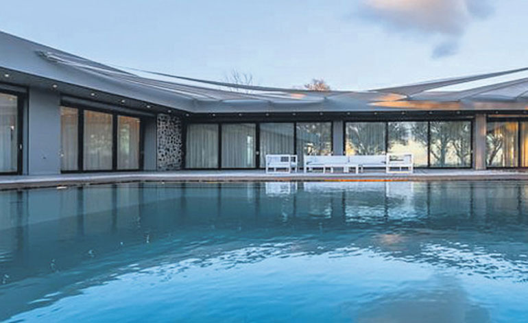 Όπως αναφέρεται και στην… αγγελία, η «βίλα προσφέρει 823 τετραγωνικά μέτρα κομψών εσωτερικών χώρων». Επίσης, τονίζεται ότι η πολυτελής έπαυλη έχει κατασκευαστεί σε οικόπεδο 5.000 τ.μ. με ανεμπόδιστη θέα στη θάλασσα, ενώ μια τεχνητή λίμνη συμπληρώνει το μεγαλοπρεπές σκηνικό. Στο εσωτερικό δεσπόζει το τεράστιο καθιστικό με τα ψηλά ταβάνια ανάμεσα σε δύο πτέρυγες που δίνουν στο σπίτι τη μορφή του ελληνικού γράμματος «Π».