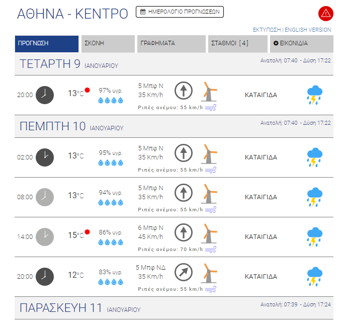 Πηγές: Μeteoclub, Εθνικό Αστεροσκοπείο Αθηνών, weather, MetDesk.eu
