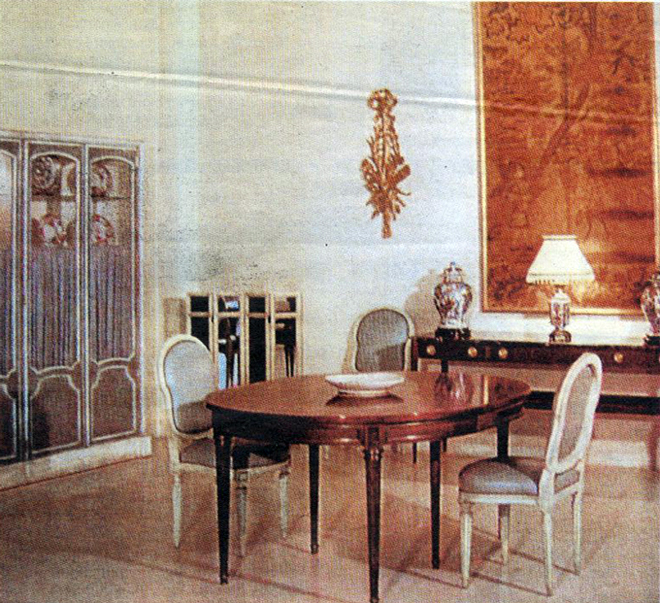Τους τοίχους τους κοσμούν δεκάδες αυθεντικοί πίνακες ζωγραφικής, με τις υπογραφές όλων των μεγάλων Ελλήνων ζωγράφων. Μαζί τους, πέντε σαλόνια, καθρέφτες, μινιατούρες, χρυσά και επάργυρα σερβίτσια συνθέτουν τον θησαυρό του οικήματος.