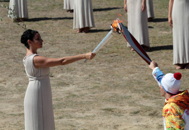 Κορυφώθηκαν σήμερα οι εκδηλώσεις στην Ολυμπία για τους ΧΧΙΙ Χειμερινούς Ολυμπιακούς Αγώνες «SOCHI 2014», με την Τελετή Αφής της Ολυμπιακής Φλόγας στις 12.00 το μεσημέρι.