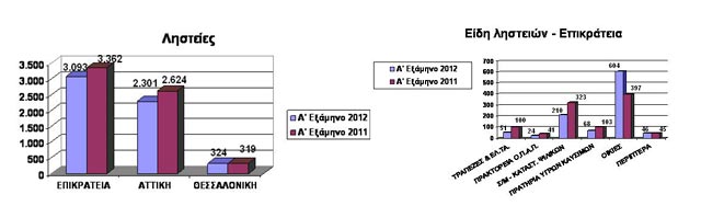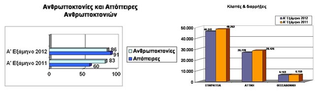 Οι αριθμοί μιλούν από μόνοι τους. Τα στατιστικά στοιχεία για την εγκληματικότητα το πρώτο εξάμηνο του 2012 όπως τα έδωσε στη δημοσιότητα η Ελληνική Αστυνομία, περιγράφουν την κατάσταση.