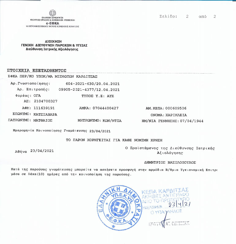 Δείτε τη γνωστοποίηση αποτελέσματος πιστοποίησης αναπηρίας: