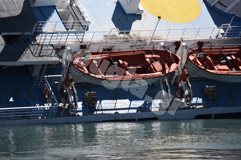 Το «Παναγία Τήνου» πήρε κλίση 40 μοιρών προς τα δεξιά και τα ρυμουλκά με τη συνδρομή δυτών επιχειρούν να το επαναφέρουν, ώστε να μπουν μέσα τεχνίτες για να κλείσουν το ρήγμα.