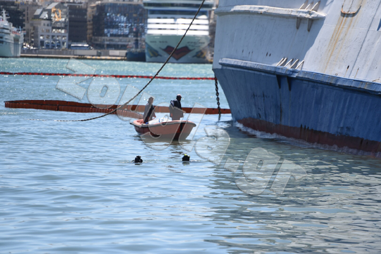 Στην επιχείρηση συμμετέχουν και δύο σκάφη απορρύπανσης, τα οποία προληπτικά έχουν στήσει πλωτά φράγματα, ώστε να αποφευχθεί τυχόν διαρροή καυσίμων από το πλοίο