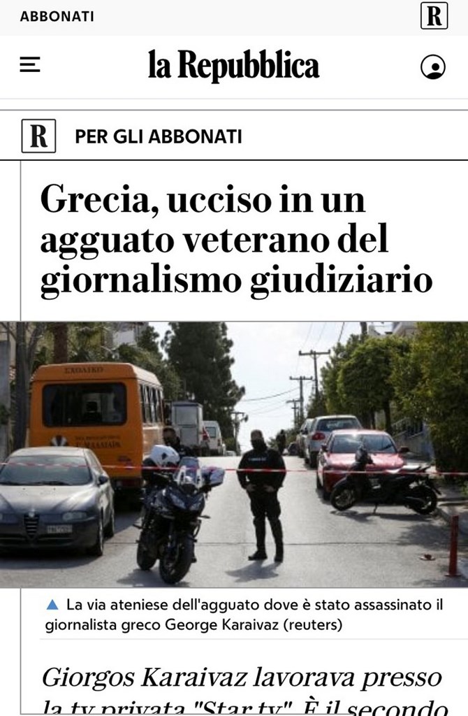 H ιταλική la Repubblica αναφέρει χαρακτηριστικά στο δημοσίευμά της ότι στήθηκε ενέδρα θανάτου σε βετεράνο Έλληνα δημοσιογράφο.