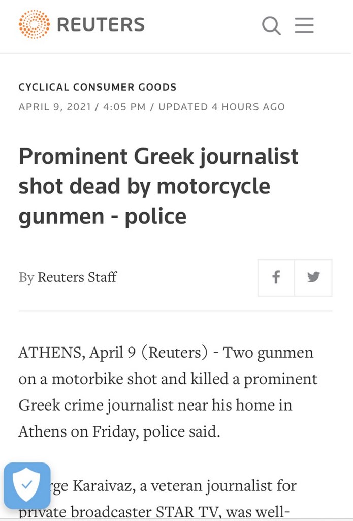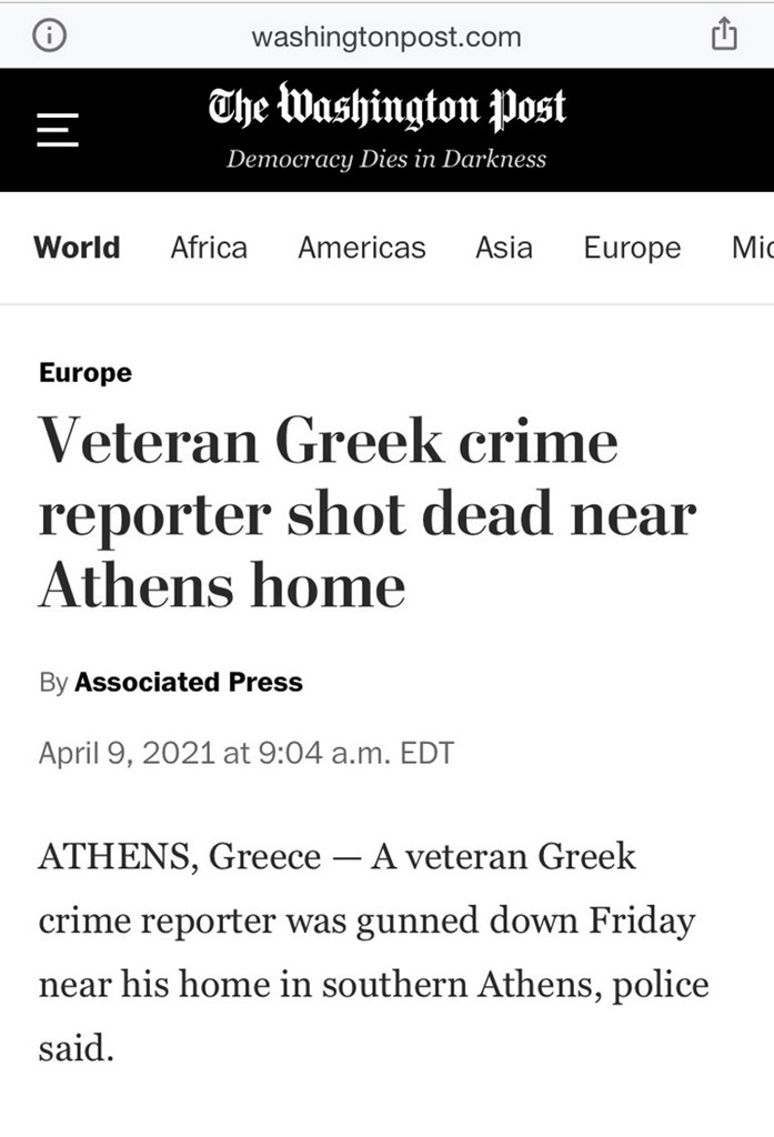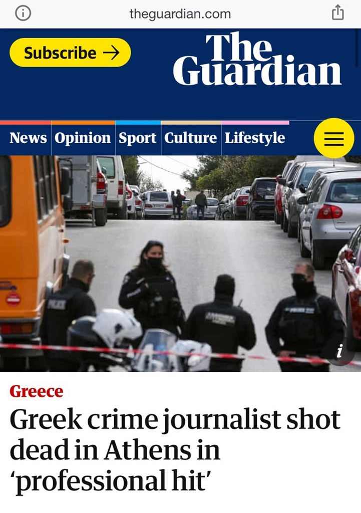 Aπό την πλευρά του o Guardian, κάνει λόγο για «επαγγελματική εκτέλεση» Έλληνα δημοσιογράφου του αστυνομικού ρεπορτάζ στην Αθήνα.