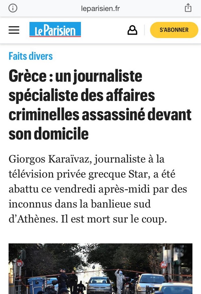 «Δημοσιογράφος του αστυνομικού ρεπορτάζ δολοφονείται μπροστά στο σπίτι του», γράφει χαρακτηριστικά η γαλλική LeParisien, παραθέτοντας περισσότερες λεπτομέρειες μέσα από εκτενές δημοσίευμα.