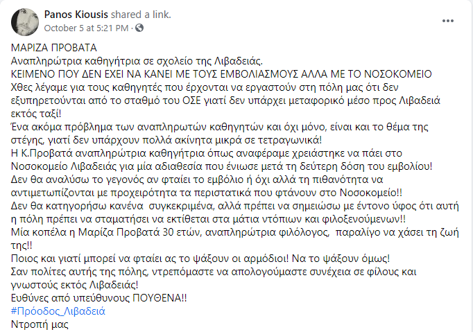 Επίσης, παρακάτω δείτε και τον ηλεκτρονικό σύνδεσμο στον οποίο μπορείτε να αναγνώσετε την ανάρτηση του Κωνσταντίνου Πλιακοστάμου στο Facebook.