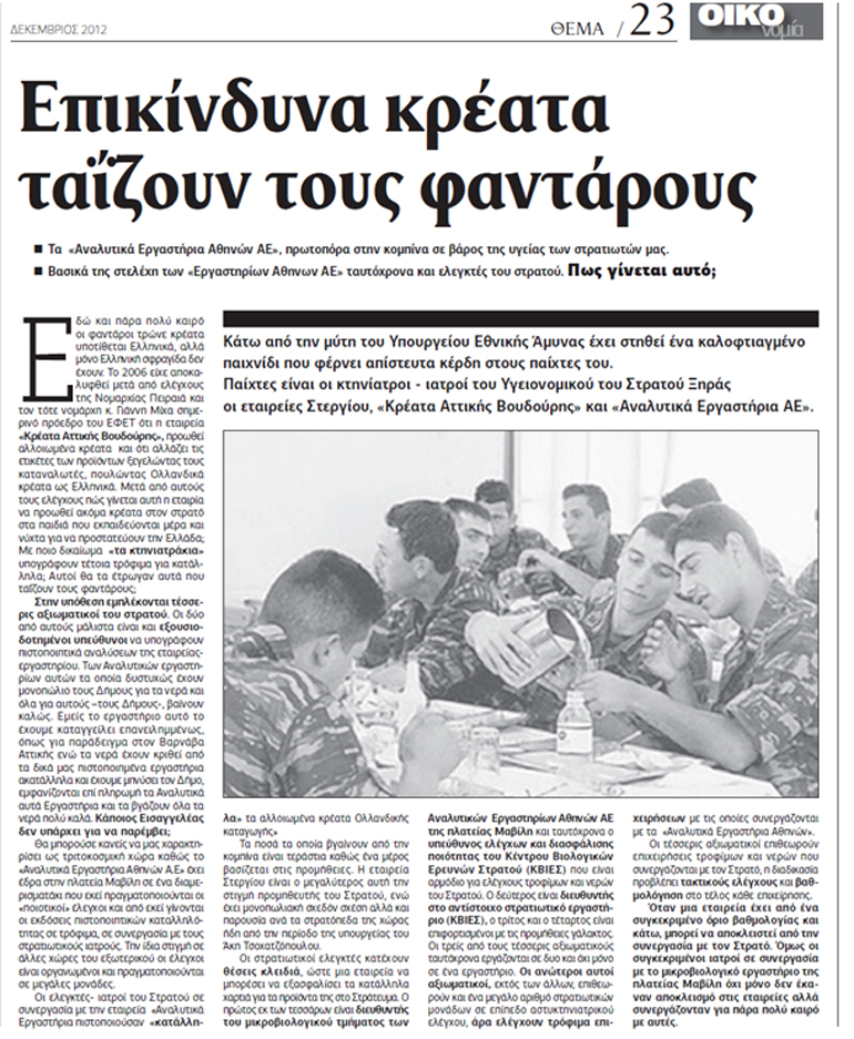 1. Η εταιρεία που αναφέρεται στο δημοσίευμα σας, (ΠΑΚΟΕ), δεν είναι ενταγμένη στους επίσημους καταλόγους των Διαπιστευμένων Εργαστηρίων του Εθνικού Συστήματος Διαπίστευσης (ΕΣΥΔ).